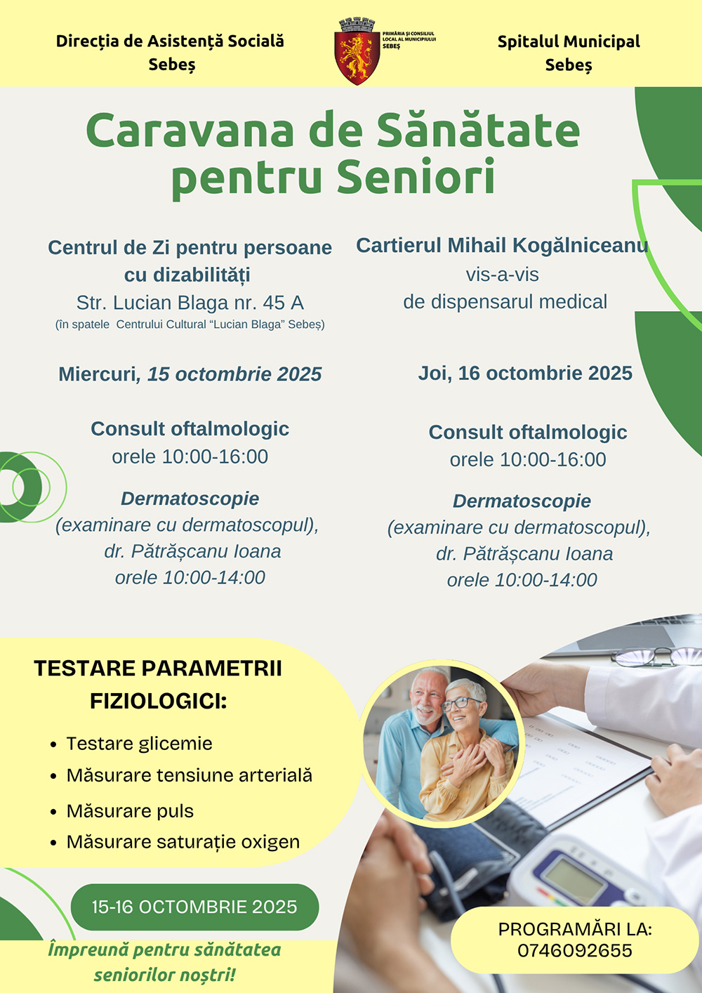 În cele două zile de Caravană, 75 de seniori din Sebeș au primit cu bucurie sprijinul echipei medicale comunitare din cadrul Direcției de Asistență Socială Sebeș, beneficiind de: